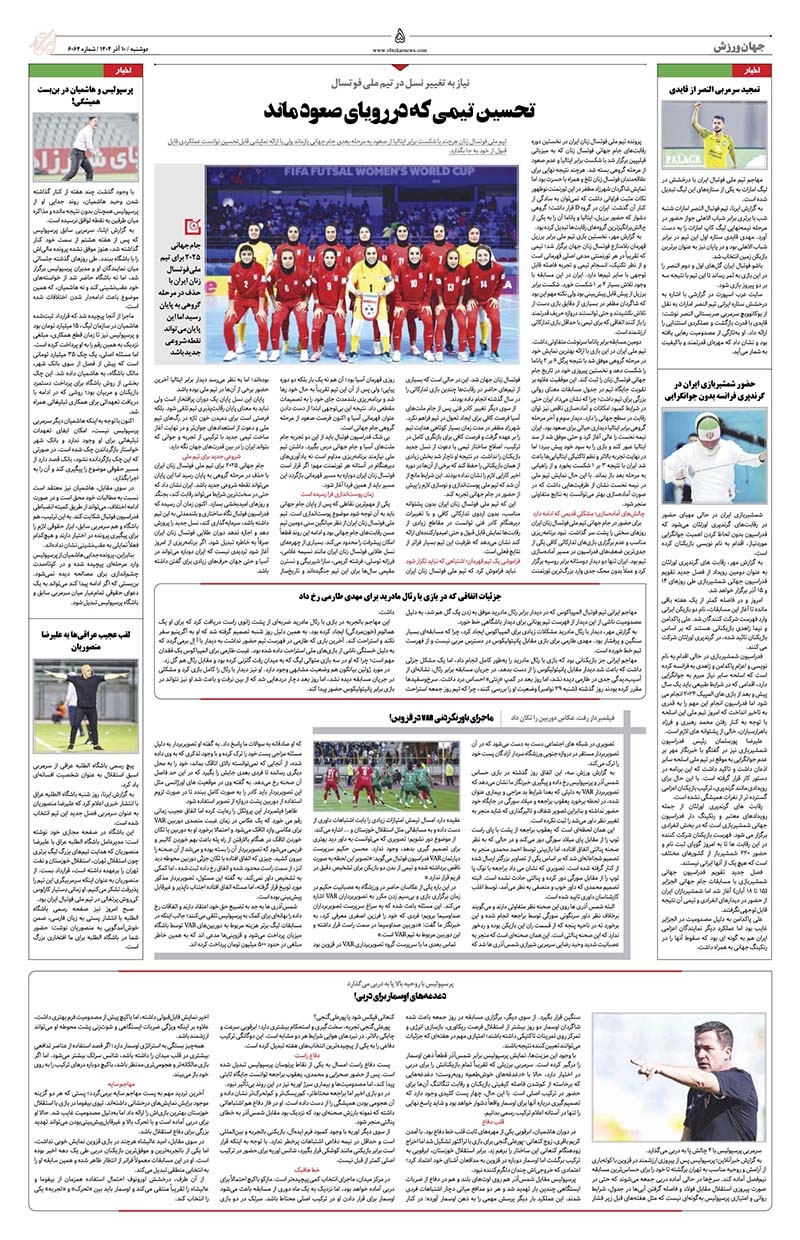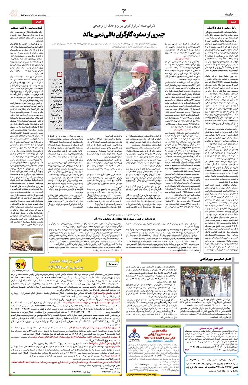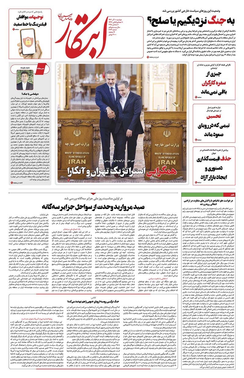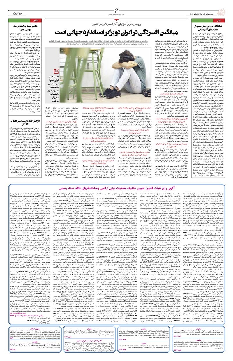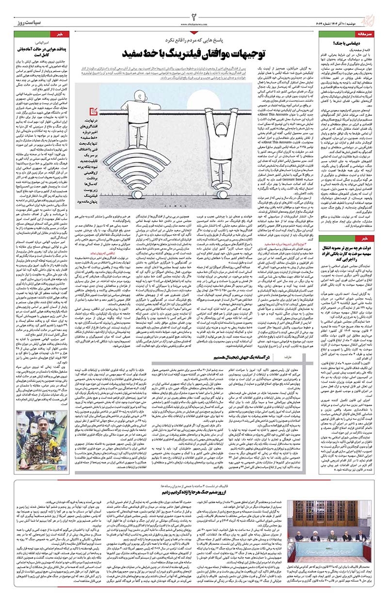صفحه ۱۲ |  صفحه ۱۱ | ایران و جهان صفحه ۱۰ | آگهی صفحه ۹ | تولید و تجارت صفحه ۸ | بازار و سرمایه صفحه ۷ | ایران زمین صفحه ۶ | حوادث صفحه ۵ | جهان ورزش صفحه ۴ | فرهنگ و هنر صفحه ۳ | جامعه صفحه ۲ | سیاست روز صفحه ۱