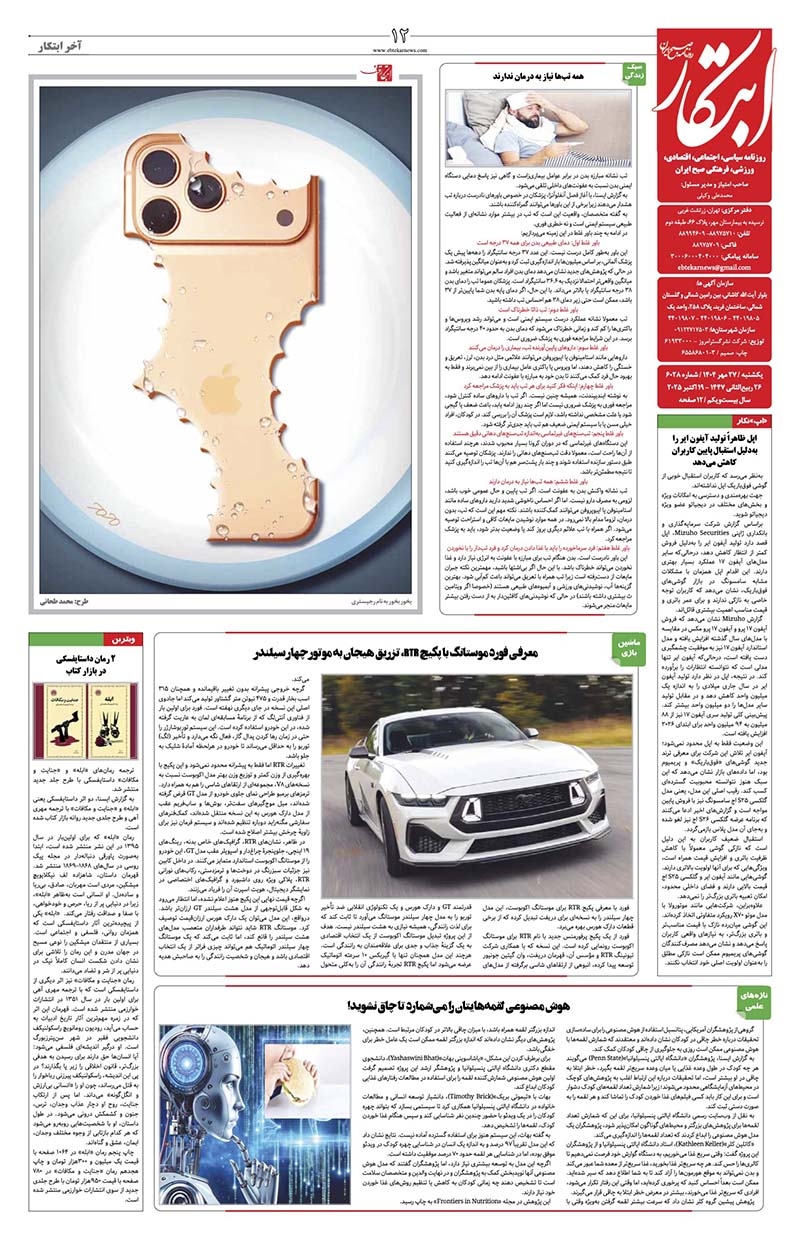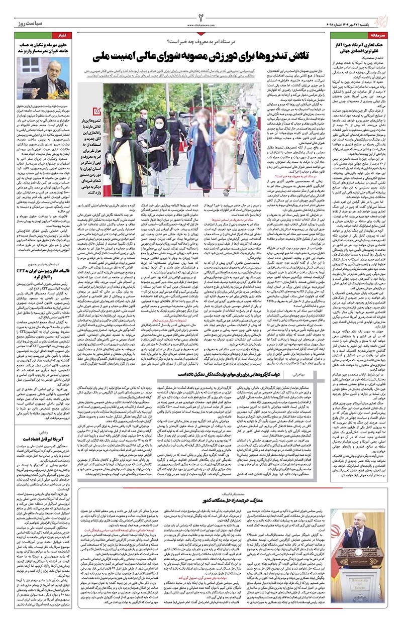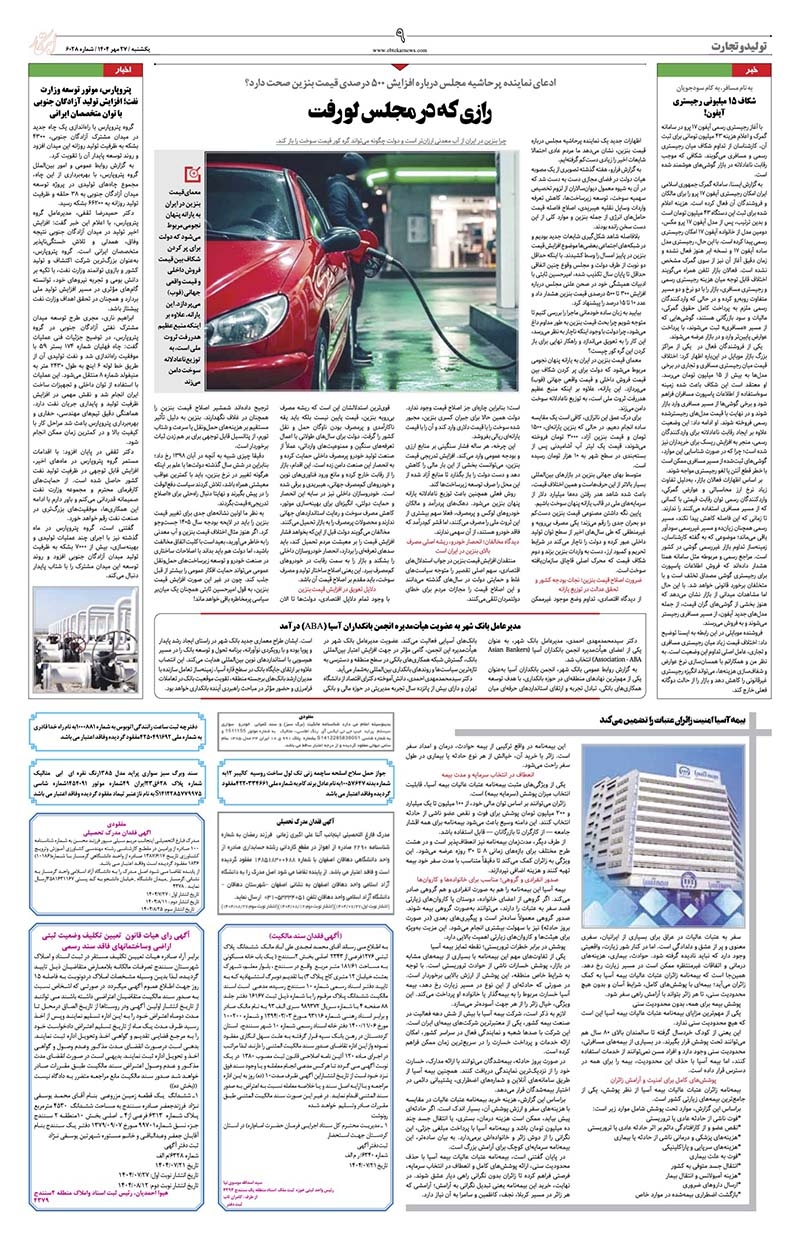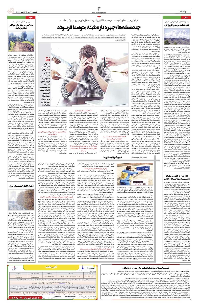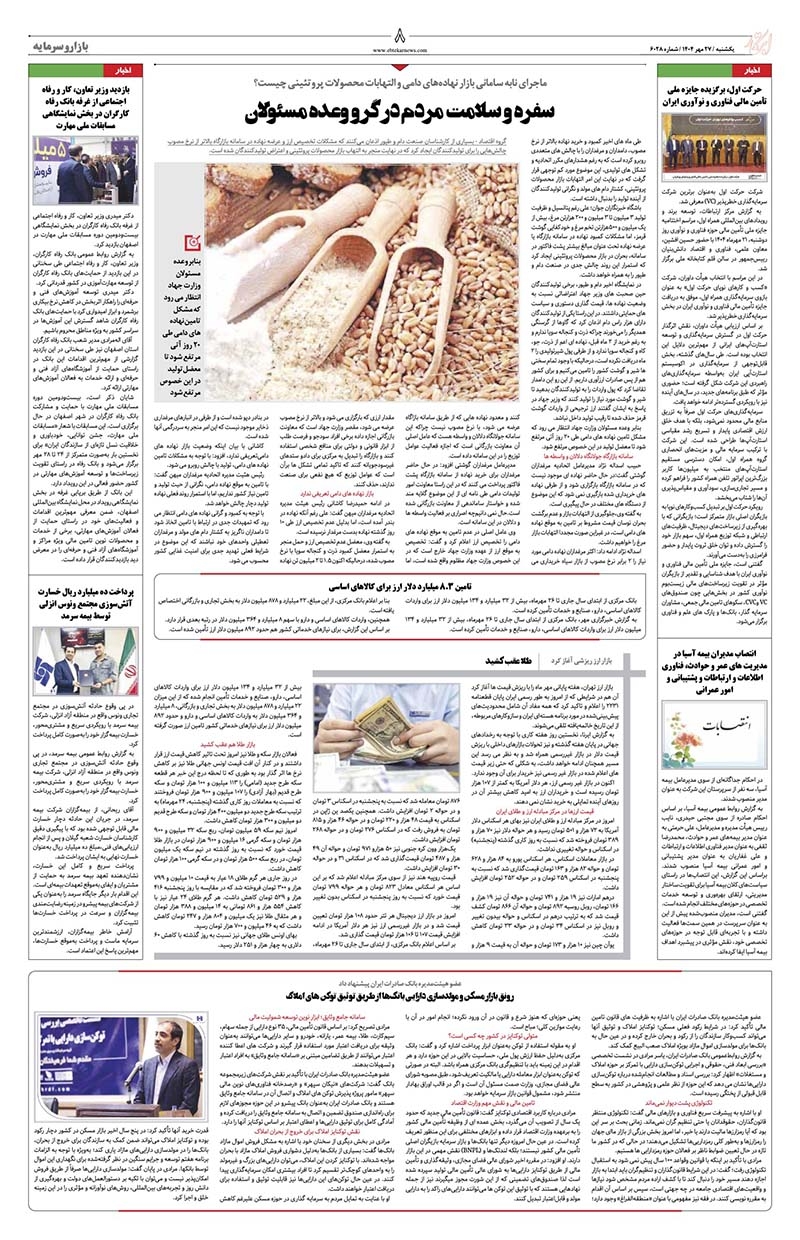 صفحه آخر صفحه ۱۱ | ایران و جهان صفحه ۱۰ | آگهی صفحه ۹ | تولید و تجارت صفحه ۸ | بازار و سرمایه صفحه ۷ | ایران زمین صفحه ۶ | حوادث صفحه ۵ | جهان ورزش صفحه ۴ | فرهنگ و هنر صفحه ۳ | جامعه صفحه ۲ | سیاست روز صفحه ۱