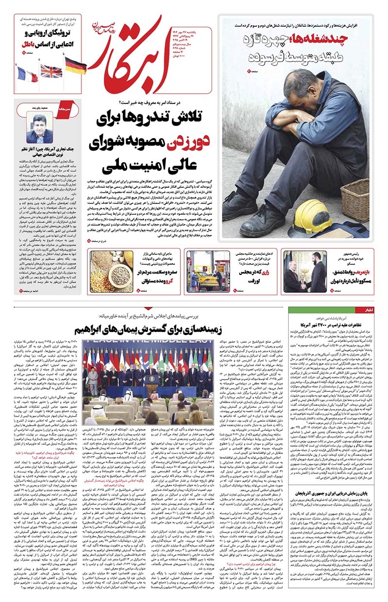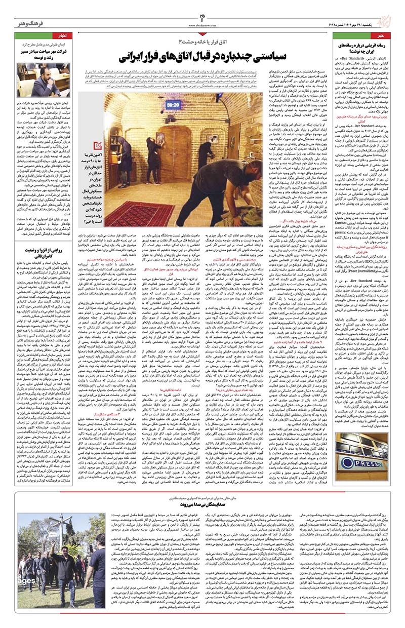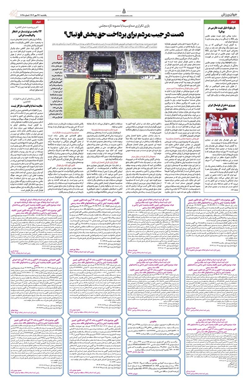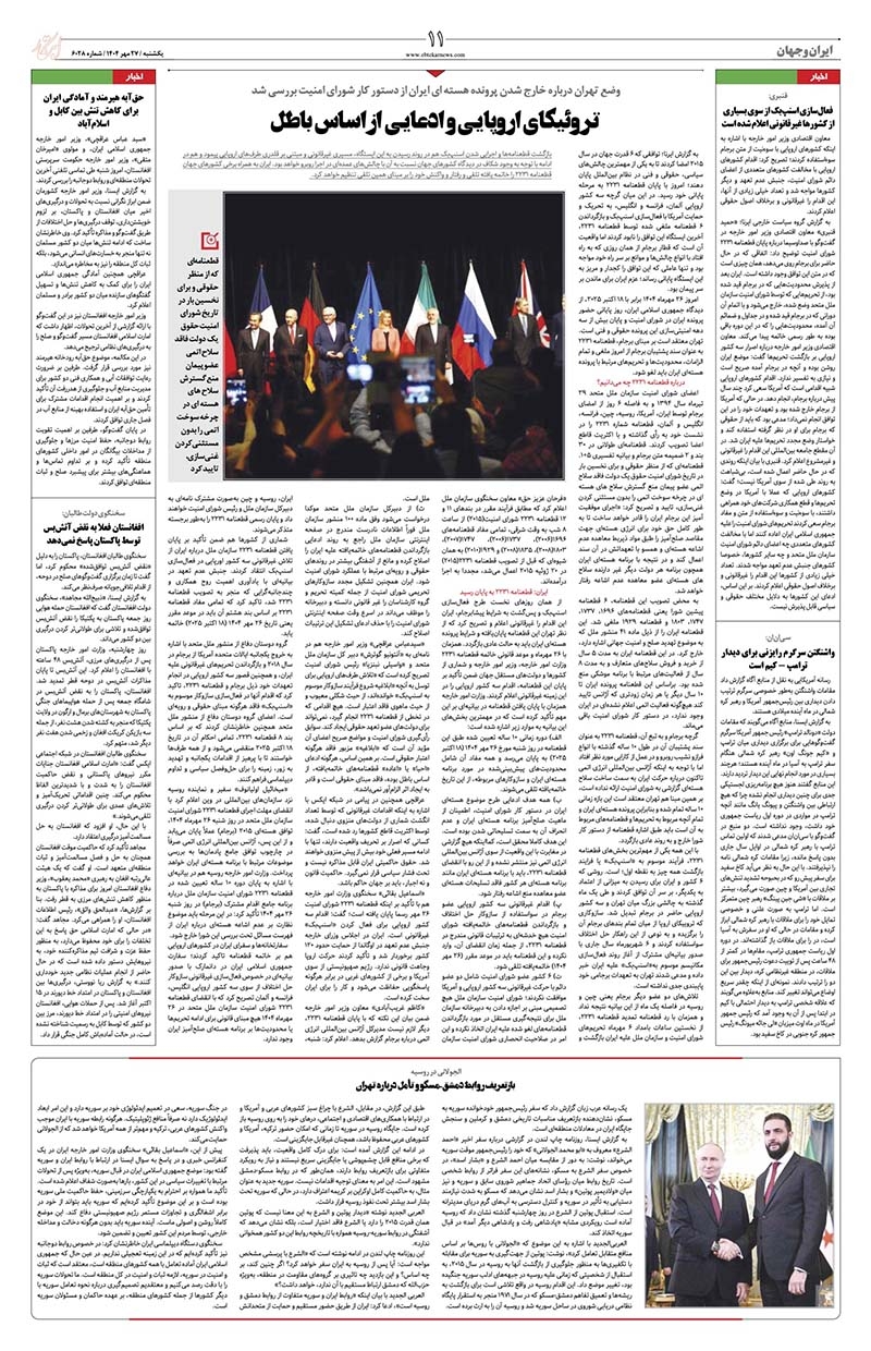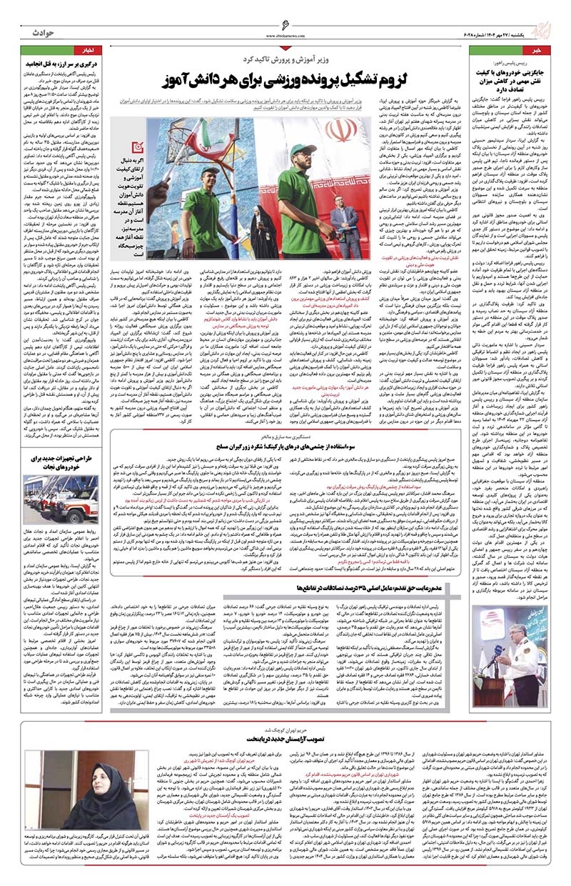 صفحه آخر صفحه ۱۱ | ایران و جهان صفحه ۱۰ | آگهی صفحه ۹ | تولید و تجارت صفحه ۸ | بازار و سرمایه صفحه ۷ | ایران زمین صفحه ۶ | حوادث صفحه ۵ | جهان ورزش صفحه ۴ | فرهنگ و هنر صفحه ۳ | جامعه صفحه ۲ | سیاست روز صفحه ۱