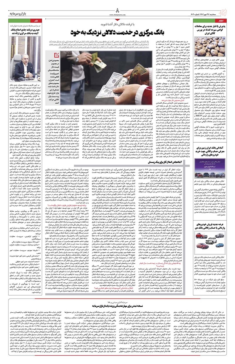 بانک مرکزی در خدمت دلالان نزدیک به خود آمادهباش انتقال گاز برای پیک زمستان نسخه تمدن برای مهار نقدینگی و رشد پایدار بازار سرمایه پذیرش ۵ انبار جدید برای معاملات گواهی سپرده گندله در بورس کالای ایران آمادگی بانک ایران زمین برای معرفی حساب وکالتی جهت خرید خودروهای وارداتی عرضه جدید فروش خودروهای وارداتی با حساب وکالتی بانک دی حیدری: برنامه جامع اصلاح بانک آینده به بانک مرکزی ارائه شد