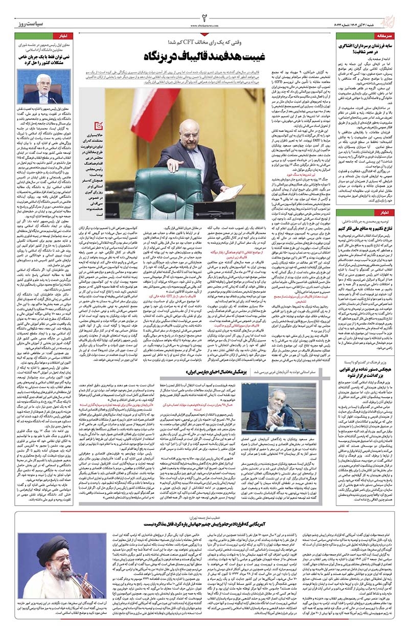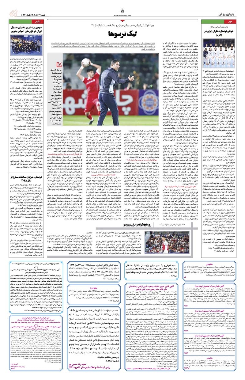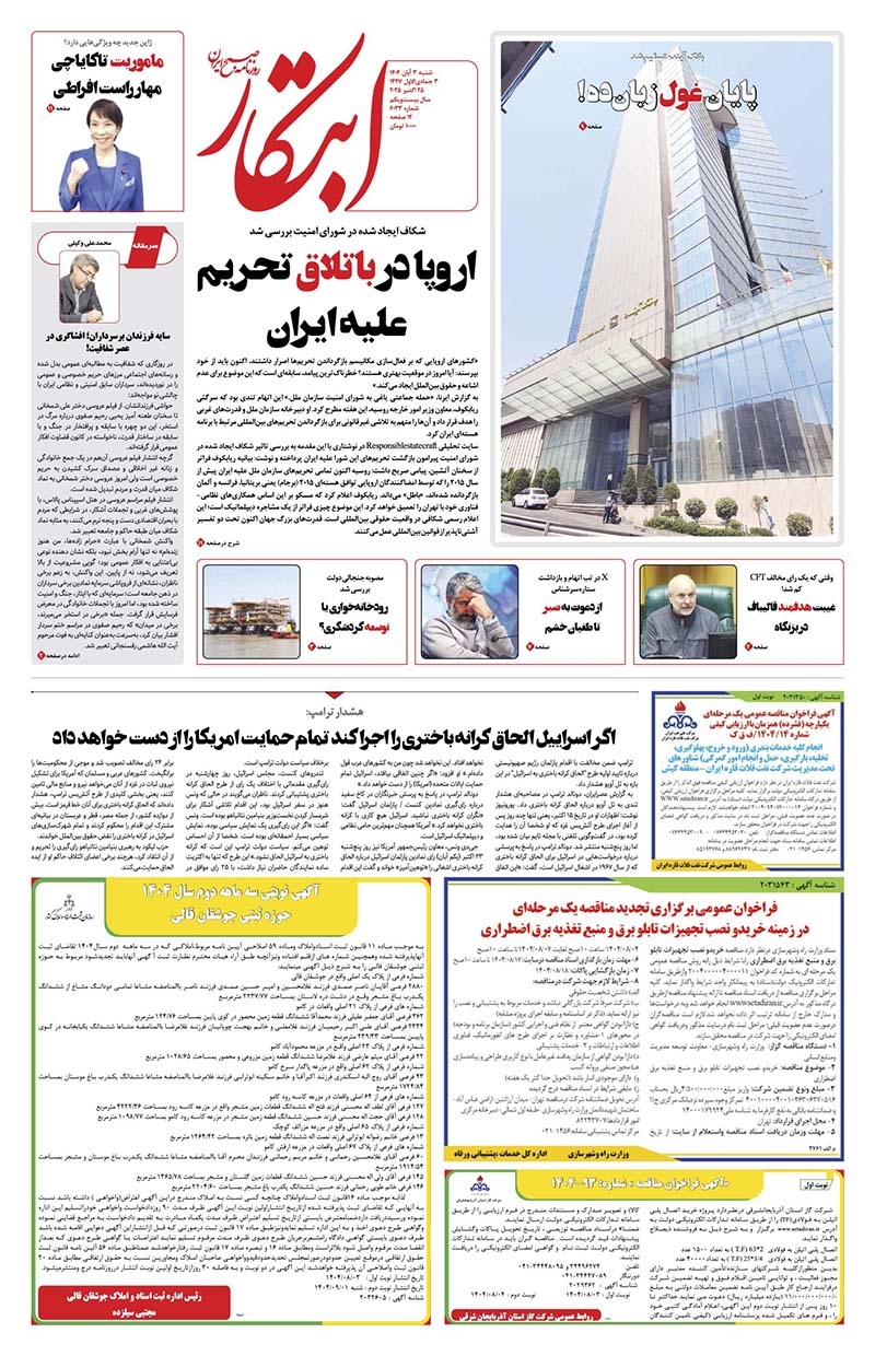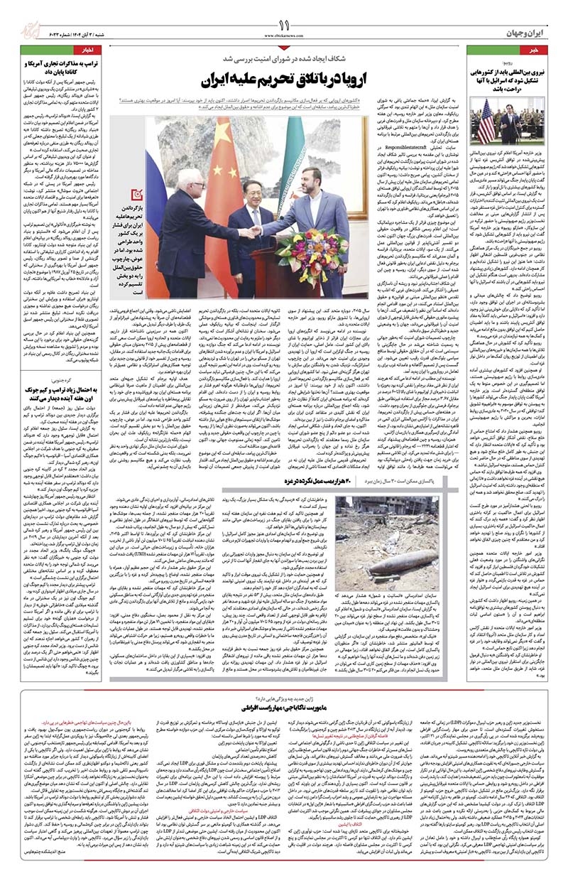 صفحه آخر صفحه ۱۱ | ایران و جهان صفحه ۱۰ | آگهی صفحه ۹ | تولید و تجارت صفحه ۸ | آگهی صفحه ۷ | ایران زمین صفحه ۶ | آگهی صفحه ۵ |  صفحه ۳ |  صفحه ۲ | سیاست روز صفحه ۱