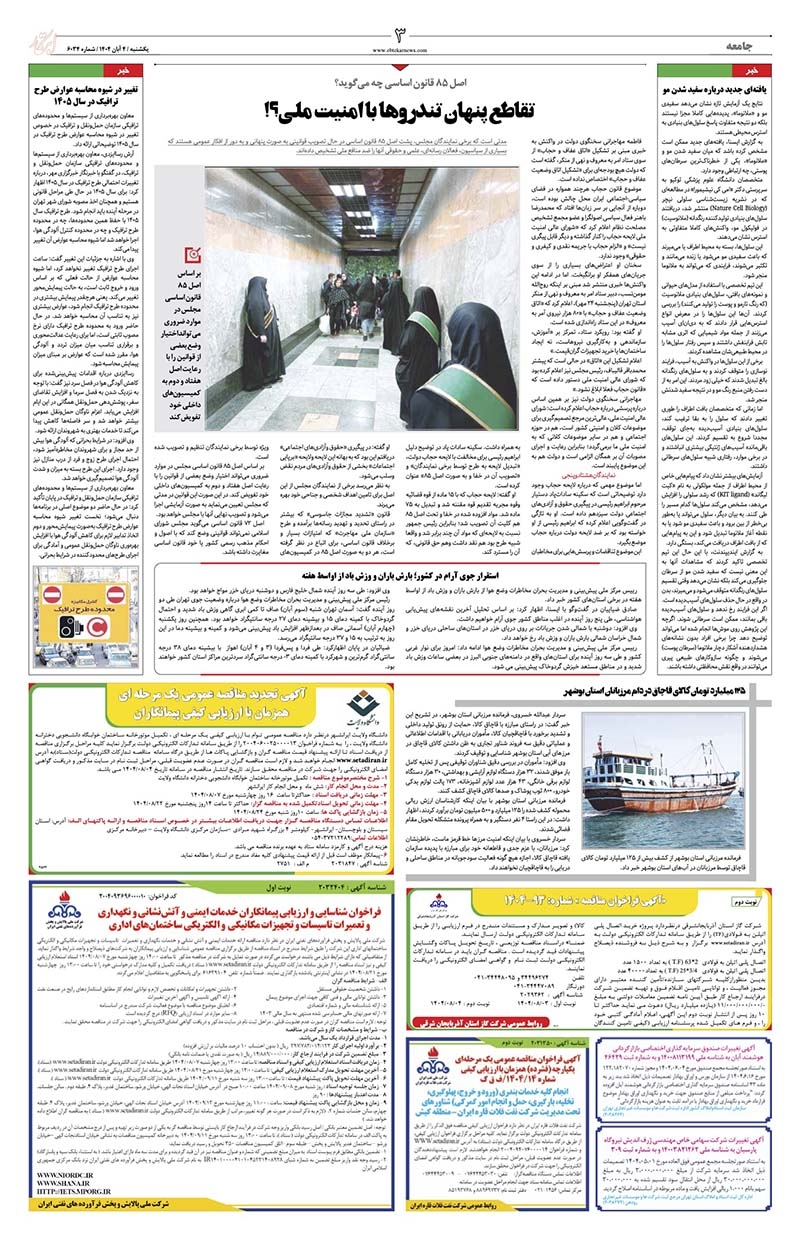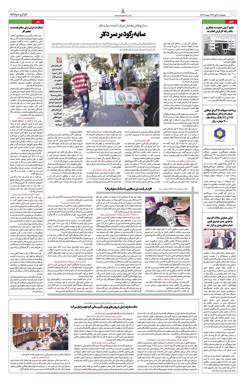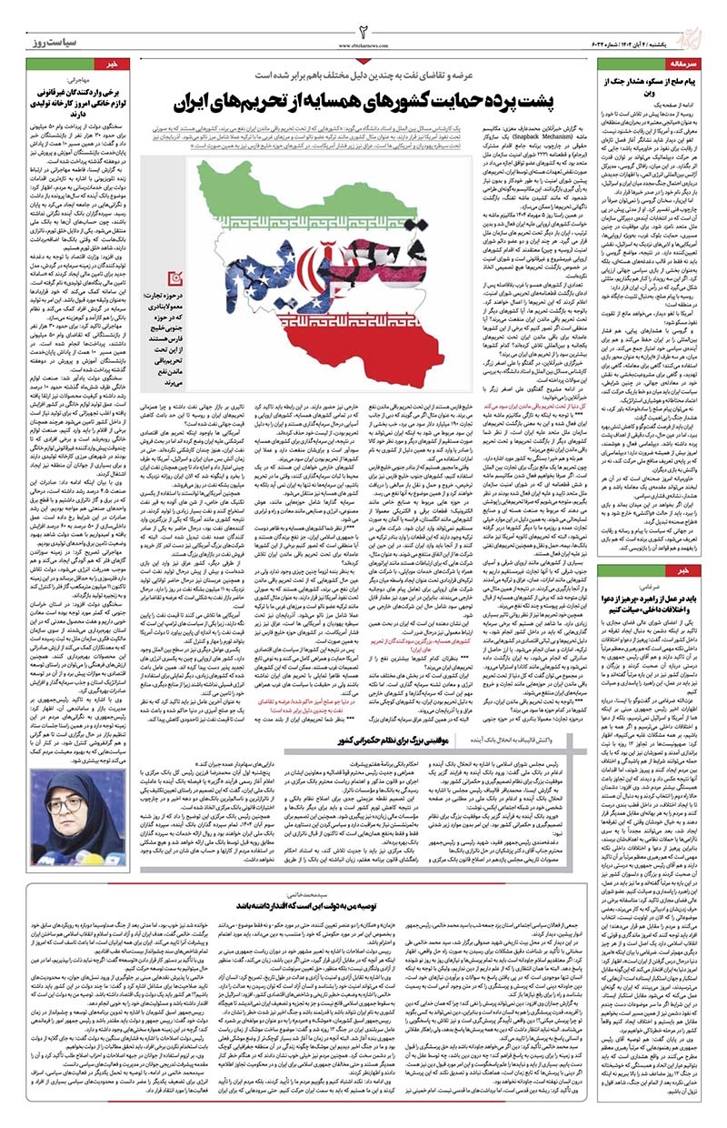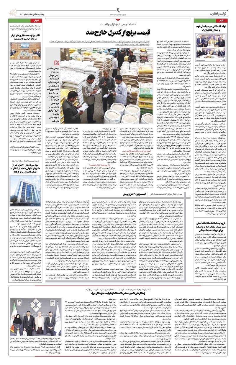 صفحه ۱ صفحه آخر صفحه ۱۱ | ایران و جهان صفحه ۱۰ | آگهی صفحه ۹ | تولید و تجارت صفحه ۸ | بازار و سرمایه صفحه ۶ | حوادث صفحه ۵ | جهان ورزش صفحه ۴ | فرهنگ و هنر صفحه ۳ | جامعه صفحه ۲ | سیاست روز