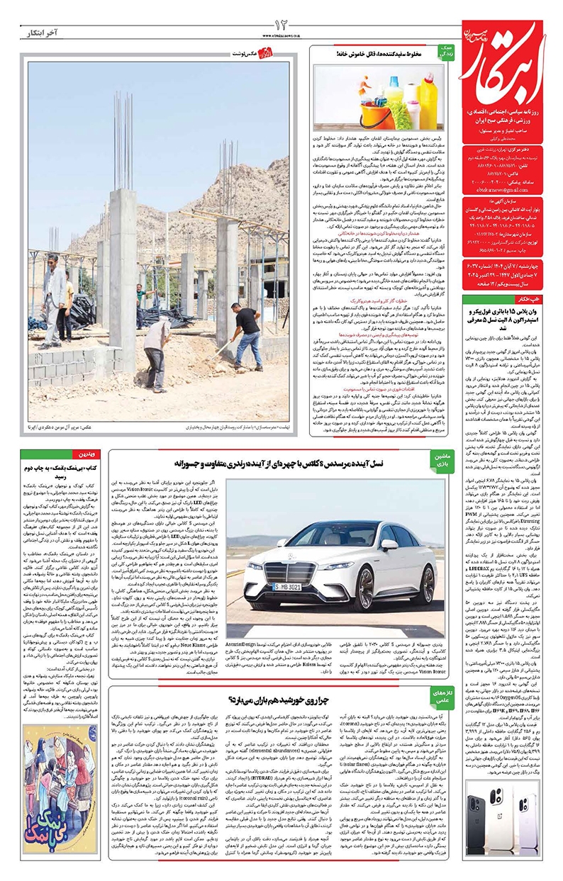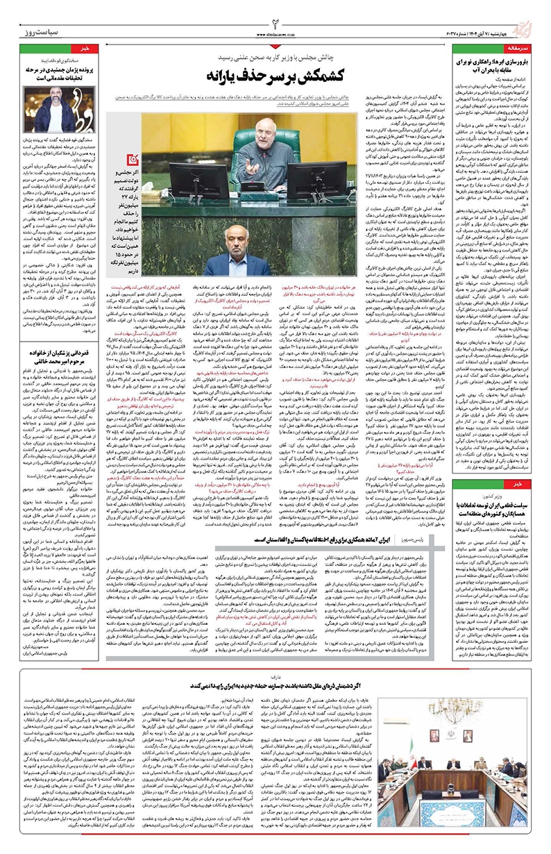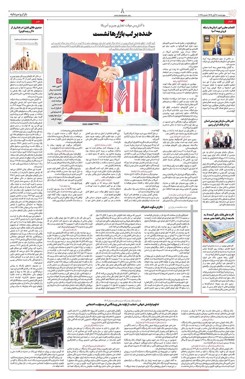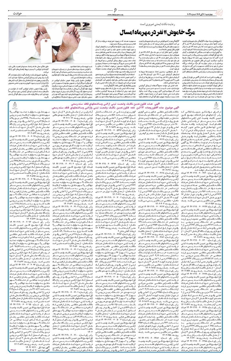 صفحه آخر صفحه ۱۱ | ایران و جهان صفحه ۱۰ | آگهی صفحه ۹ | بازار و سرمایه صفحه ۸ | ایران زمین صفحه ۷ | آگهی صفحه ۶ | حوادث صفحه ۵ | آگهی صفحه ۴ | آگهی صفحه ۳ | جامعه صفحه ۲ | سیاست روز صفحه ۱