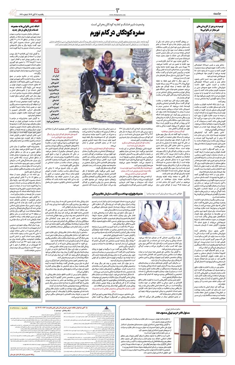 سفره کودکان در کام تورم عدم پاسخ وزارت بهداشت و تکذیب سازمان نظام پزشکی توصیه به پرهیز از افزودنیهای غیرمجاز در نانواییها اضافه شدن نانواییها به مجموعه خدمات بازارهای ترهبار جدید مسئول دفتر حریم تهران منصوب شد