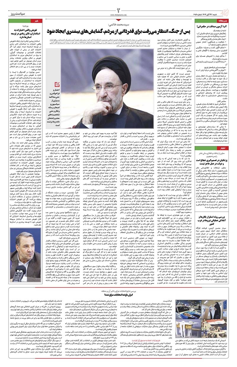 صفحه ۱۰ | آگهی صفحه ۷ | آگهی صفحه ۴ | فرهنگ و هنر صفحه ۳ | جامعه صفحه ۲ | سیاست روز صفحه ۱