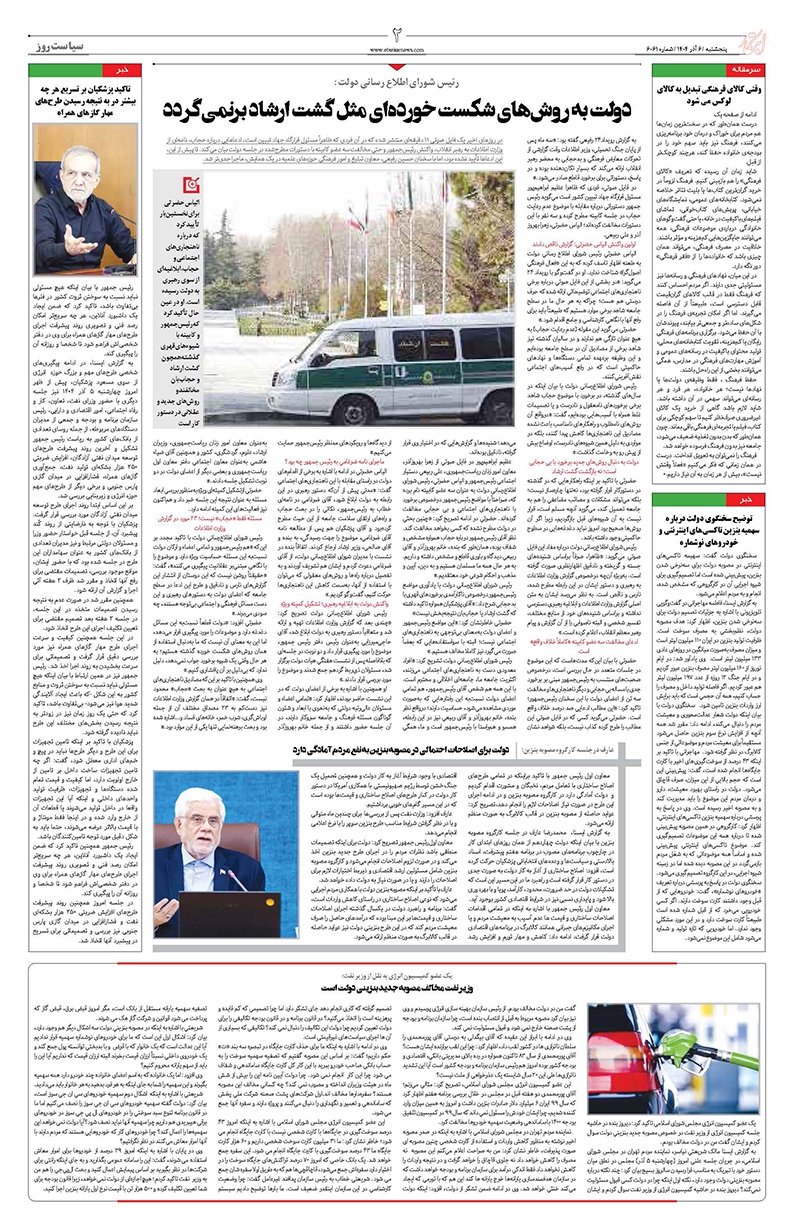 دولت به روشهای شکست خوردهای مثل گشت ارشاد برنمیگردد دولت برای اصلاحات احتمالی در مصوبه بنزین به نفع مردم آمادگی دارد وزیر نفت مخالف مصوبه جدید بنزینی دولت است تاکید پزشکیان بر تسریع هر چه بیشتر در به نتیجه رسیدن طرحهای مهار گازهای همراه توضیح سخنگوی دولت درباره سهمیه بنزین تاکسیهای اینترنتی و خودروهای نوشماره