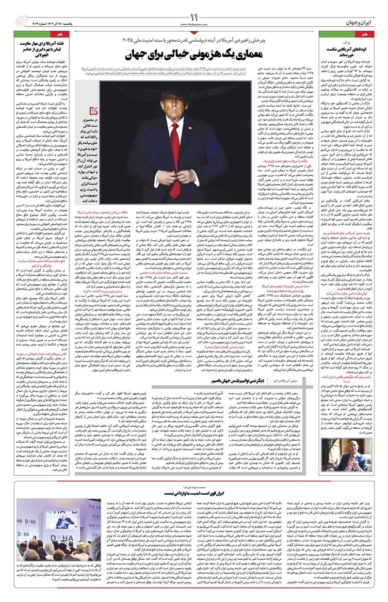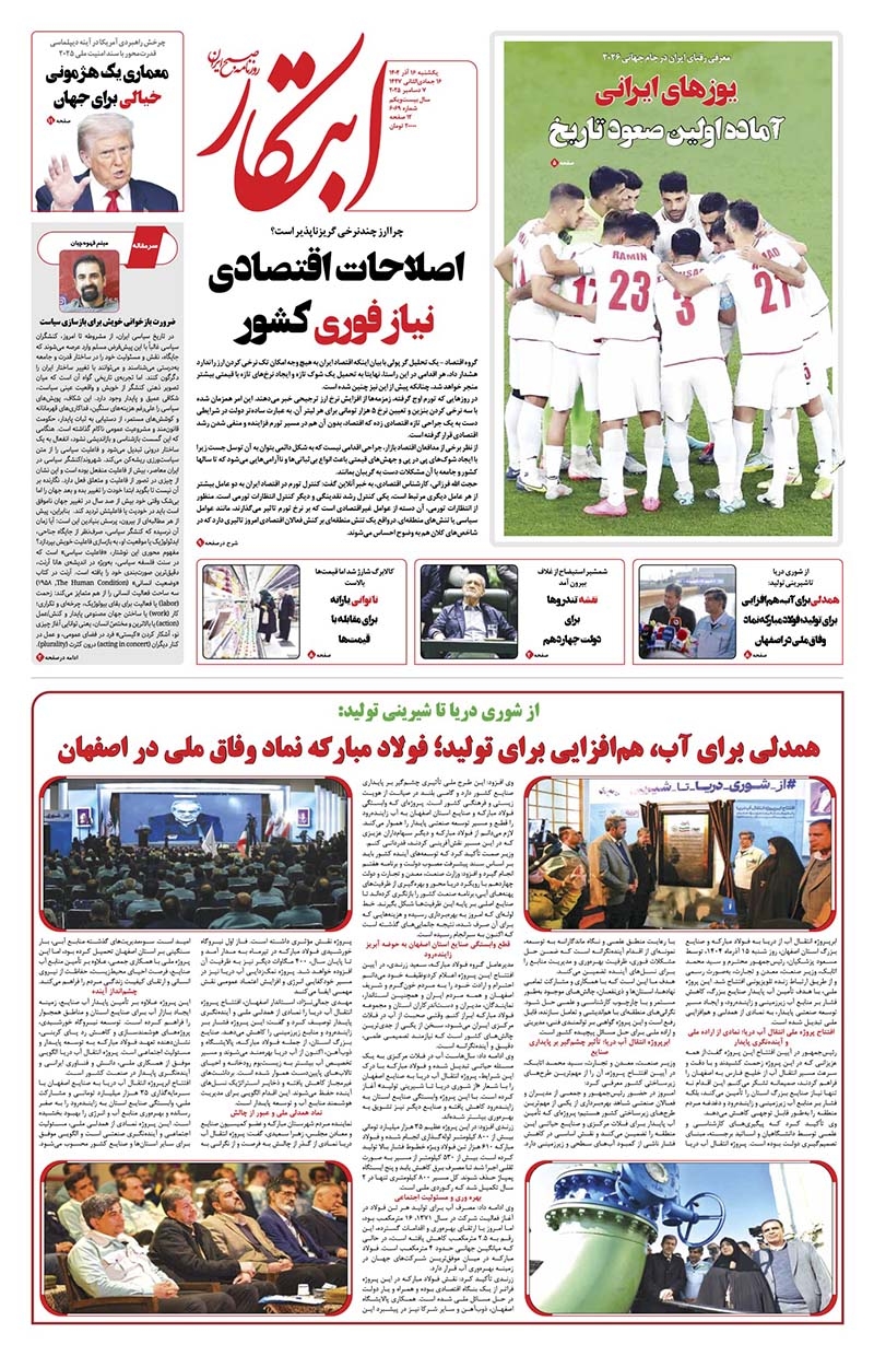 واکنش قوه قضاییه به اظهارات ثابتی درباره پرونده نگین غرب اتلاف وقت با بازی ملال آور / سیف الرضا شهابی بازگشت آرامش به بیمه ایران در دوره جدید مدیریتی یوزهای ایرانی آماده اولین صعود تاریخ ناتوانی یارانه برای مقابله با قیمتها اصلاحات اقتصادی نیاز فوری کشور معماری یک هژمونی خیالی برای جهان