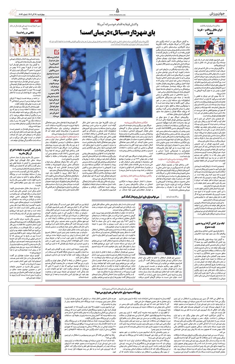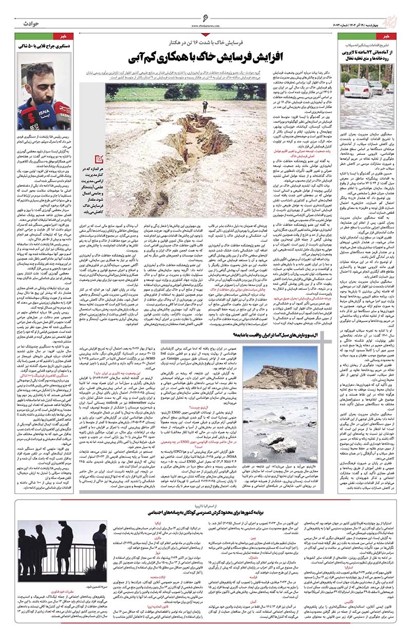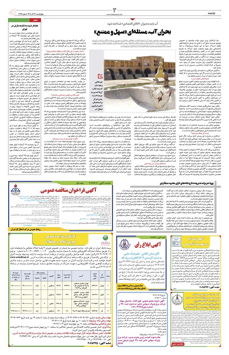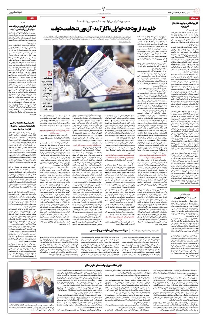 صفحه آخر صفحه ۱۱ | ایران و جهان صفحه ۱۰ | تولید و تجارت صفحه ۹ | بازار و سرمایه صفحه ۸ | آگهی صفحه ۷ | ایران زمین صفحه ۶ | حوادث صفحه ۵ | جهان ورزش صفحه ۴ | فرهنگ و هنر صفحه ۳ | جامعه صفحه ۲ | سیاست روز صفحه ۱