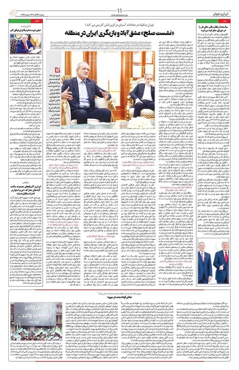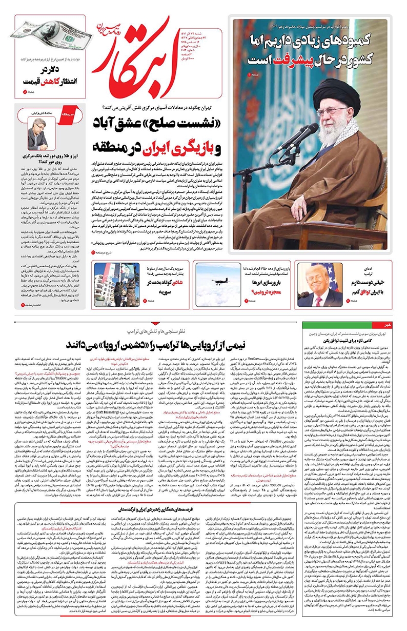 نیمی از اروپاییها ترامپ را «دشمن اروپا» میدانند فرصتهای همکاری راهبردی ایران و ترکمنستان گامی تازه برای تثبیت توافق پکن کمبودهای زیادی داریم اما کشور در حال پیشرفت است دلار در انتظار کاهش قیمت «نشست صلح» عشقآباد و بازیگری ایران در منطقه شادی کوتاه مدت در سوریه خیلی دوست دارم با ایران توافق کنم