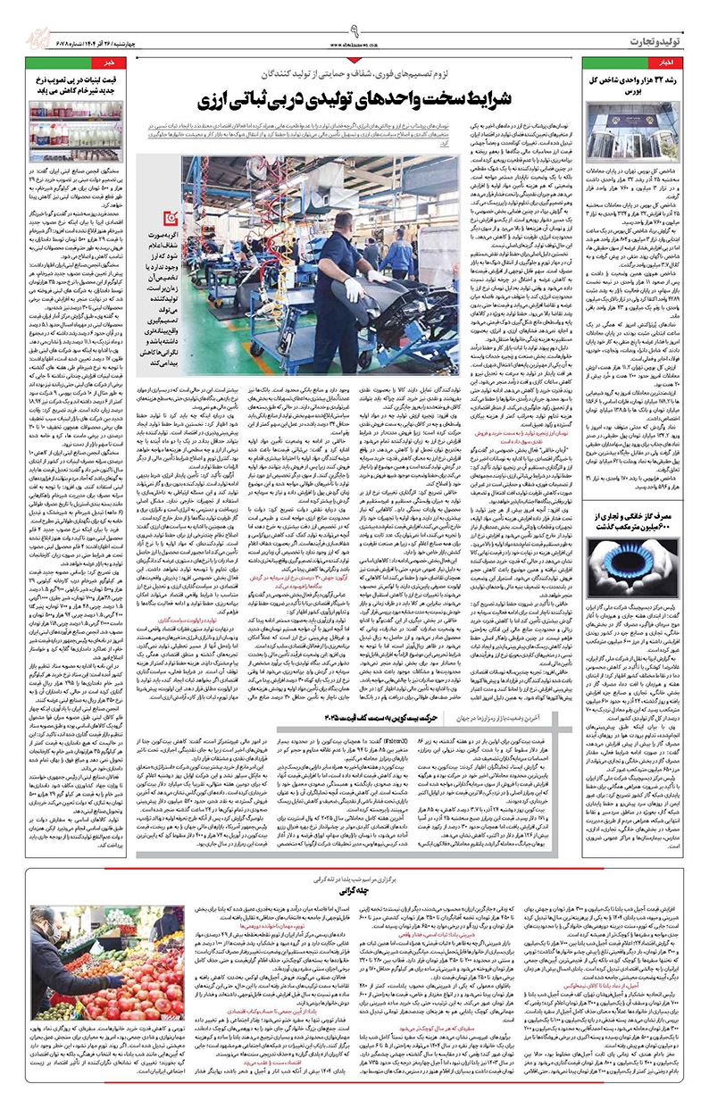 شرایط سخت واحدهای تولیدی در بیثباتی ارزی حرکت بیتکوین به سمت کف قیمت ۲۰۲۵ چله گرانی رشد ۳۲ هزار واحدی شاخص کل بورس مصرف گاز خانگی و تجاری از ۶۰۰میلیون مترمکعب گذشت قیمت لبنیات در پی تصویب نرخ جدید شیرخام کاهش می یابد