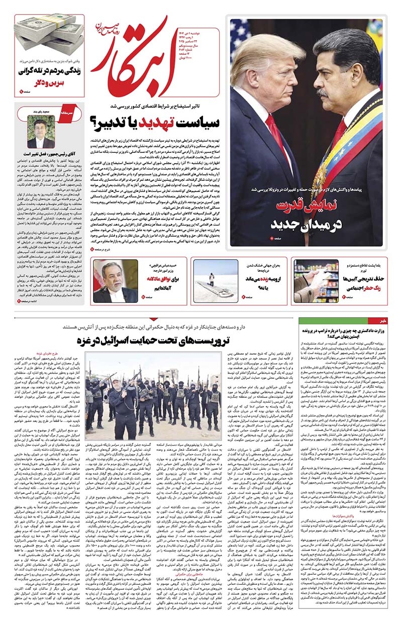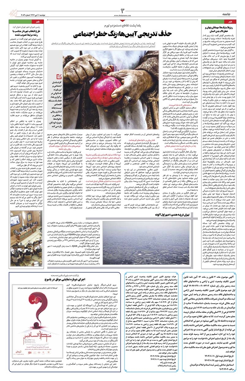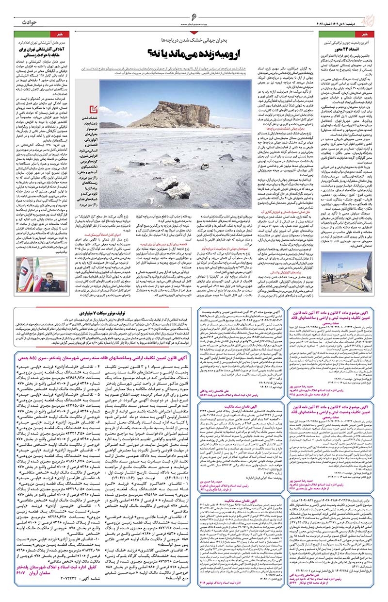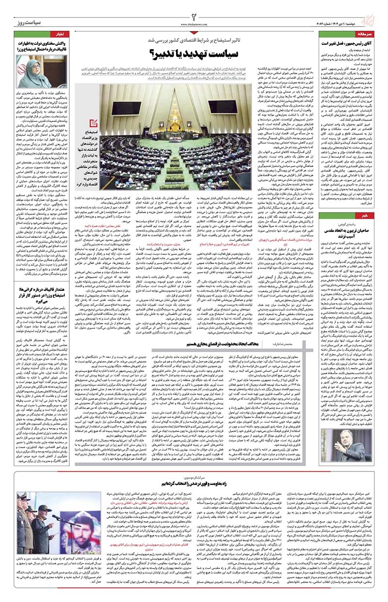 صفحه آخر صفحه ۱۱ | ایران و جهان صفحه ۱۰ | آگهی صفحه ۹ | تولید و تجارت صفحه ۸ | بازار و سرمایه صفحه ۷ | ایران زمین صفحه ۶ | حوادث صفحه ۵ | جهان ورزش صفحه ۴ | آگهی صفحه ۳ | جامعه صفحه ۲ | سیاست روز صفحه ۱