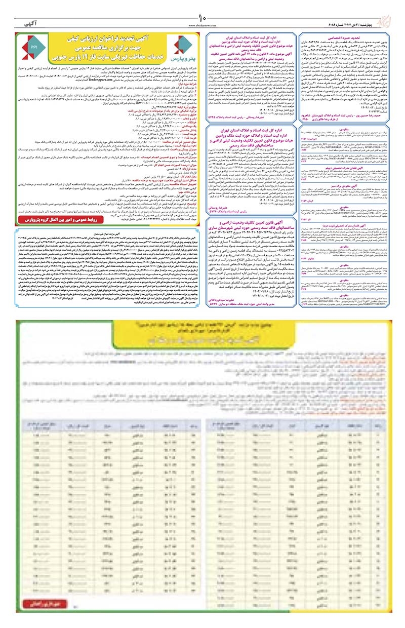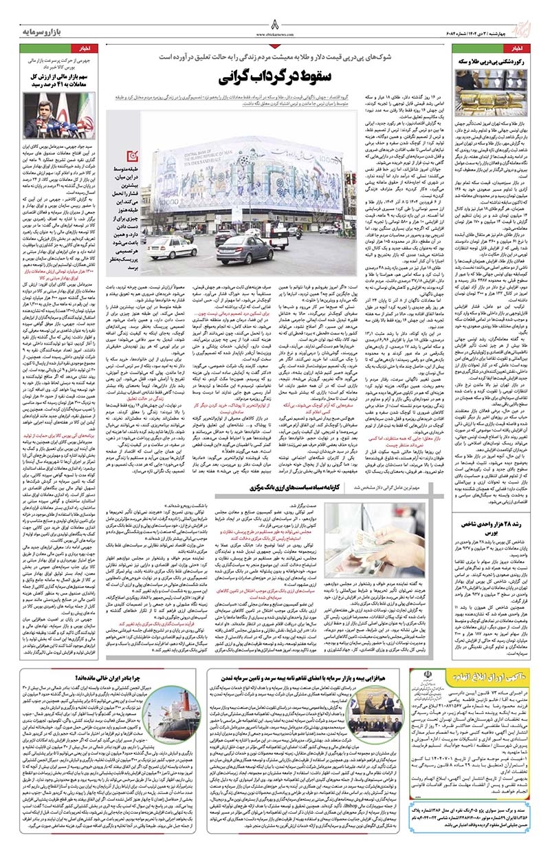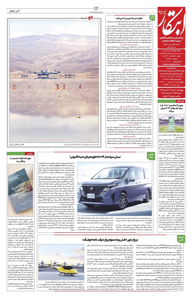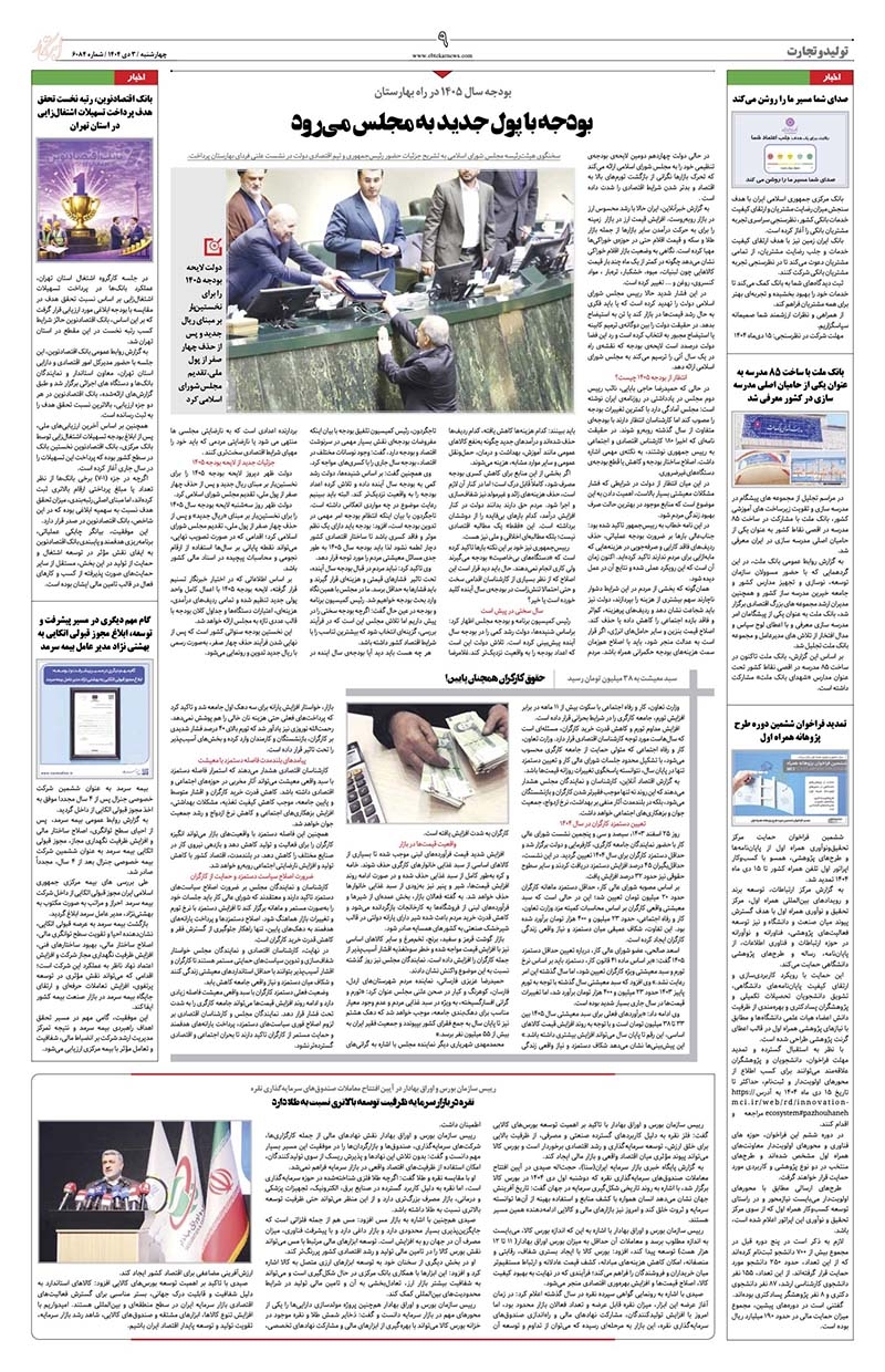 صفحه آخر صفحه ۱۱ | ایران و جهان صفحه ۱۰ | آگهی صفحه ۹ | تولید و تجارت صفحه ۸ | بازار و سرمایه صفحه ۷ | ایران زمین صفحه ۶ | آگهی صفحه ۵ | جهان ورزش صفحه ۴ | فرهنگ و هنر صفحه ۳ | جامعه صفحه ۲ | سیاست روز صفحه ۱