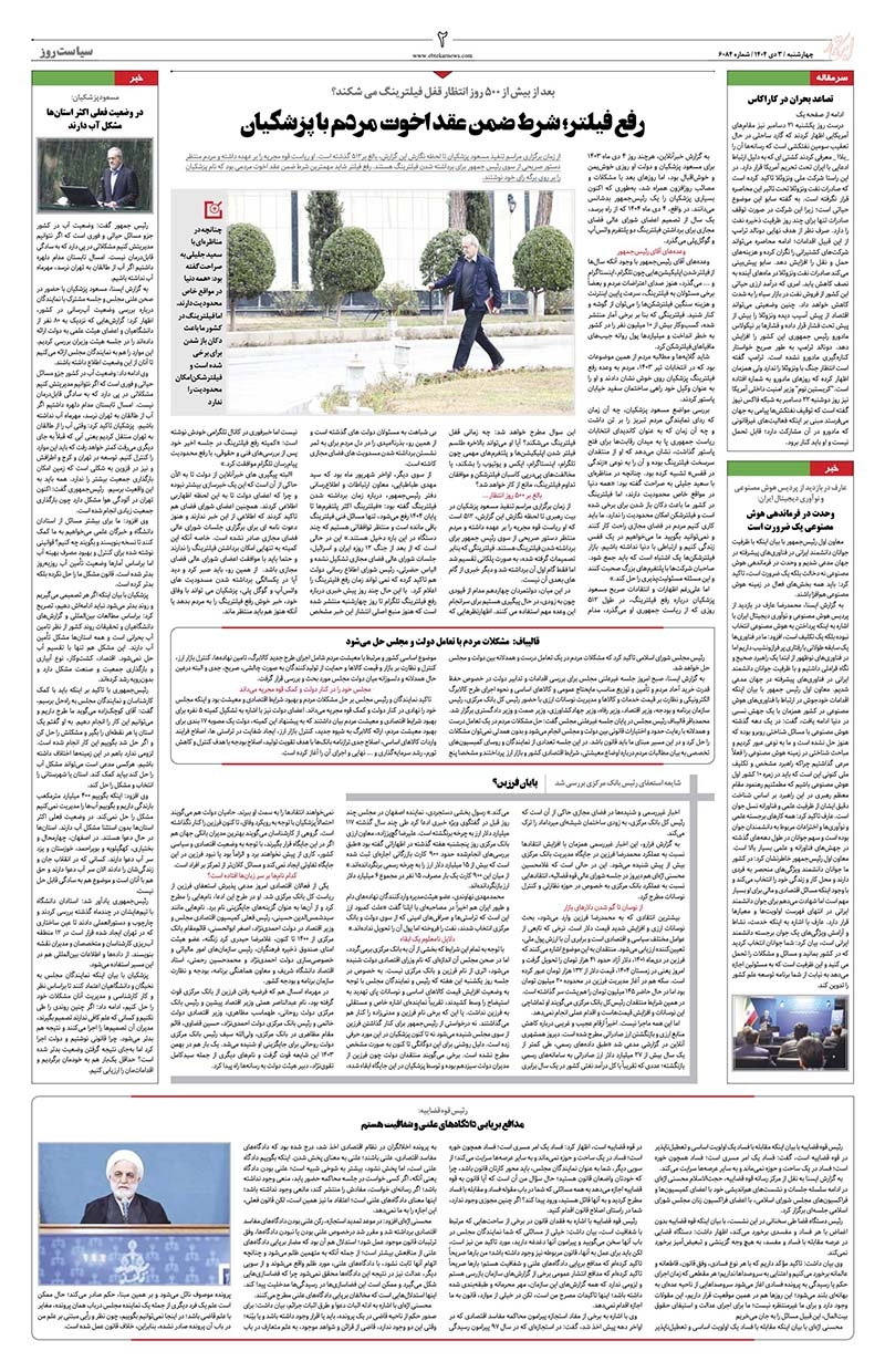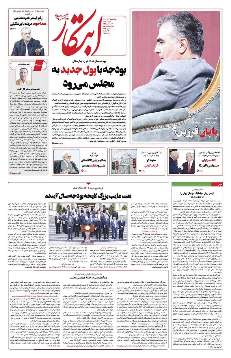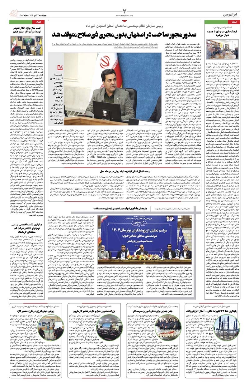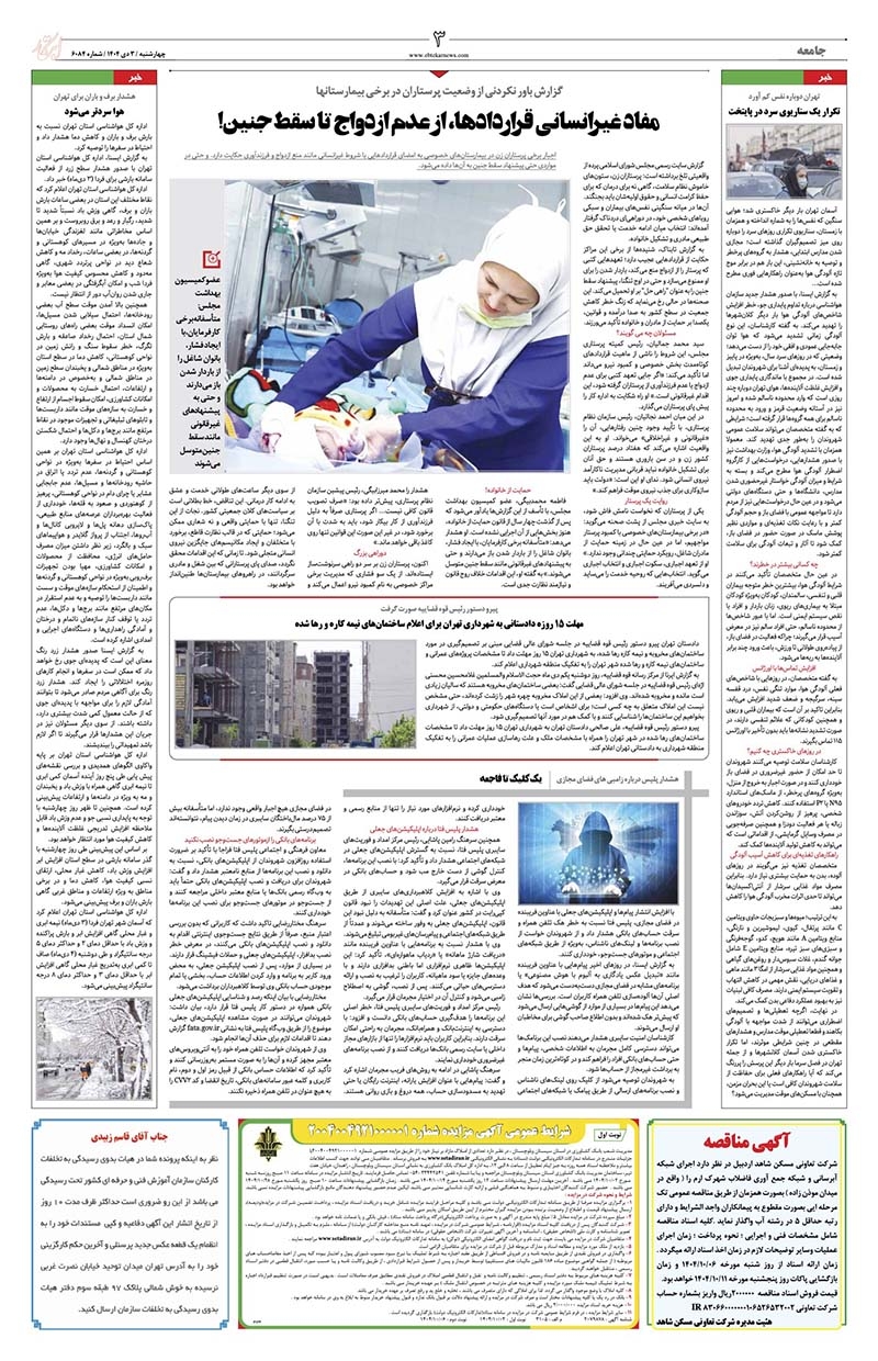 صفحه آخر صفحه ۱۱ | ایران و جهان صفحه ۱۰ | آگهی صفحه ۹ | تولید و تجارت صفحه ۸ | بازار و سرمایه صفحه ۷ | ایران زمین صفحه ۶ | آگهی صفحه ۵ | جهان ورزش صفحه ۴ | فرهنگ و هنر صفحه ۳ | جامعه صفحه ۲ | سیاست روز صفحه ۱