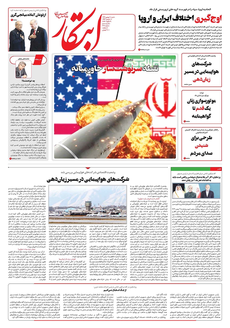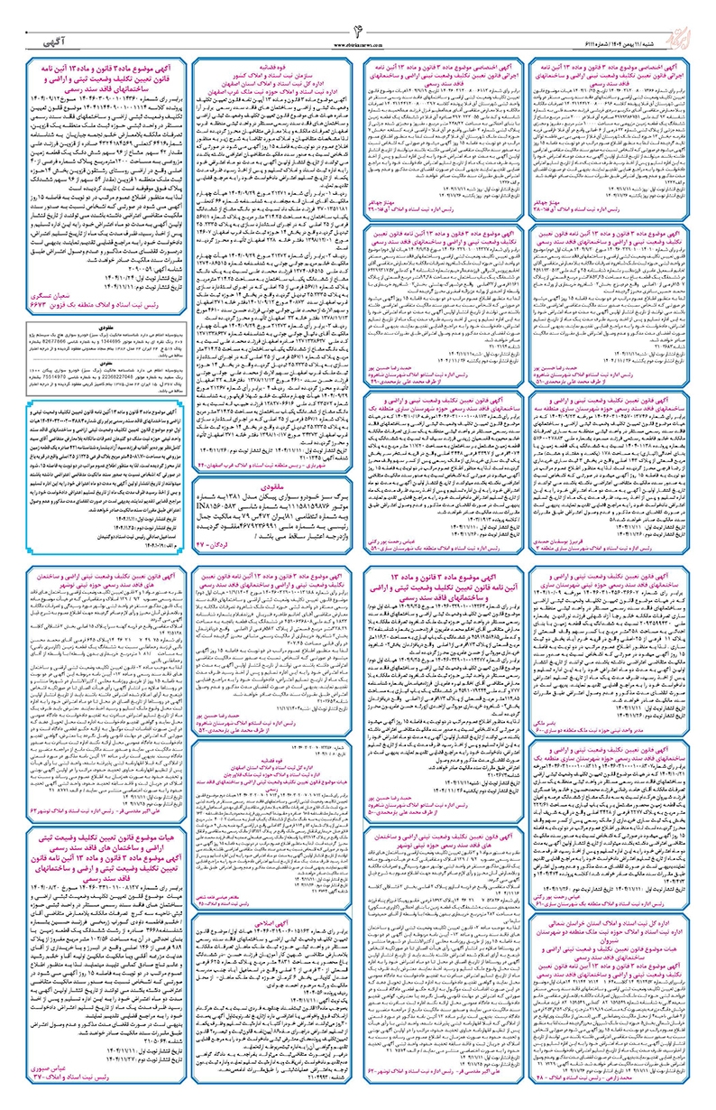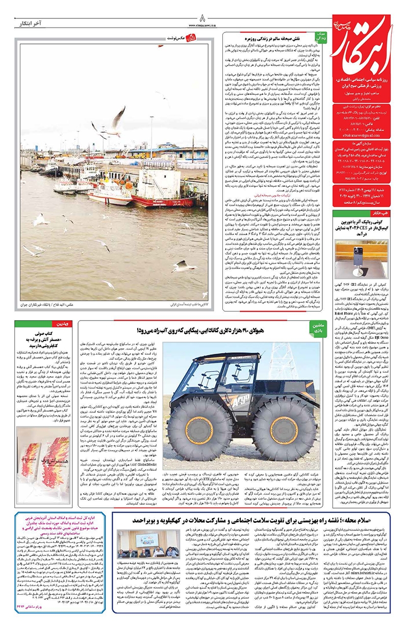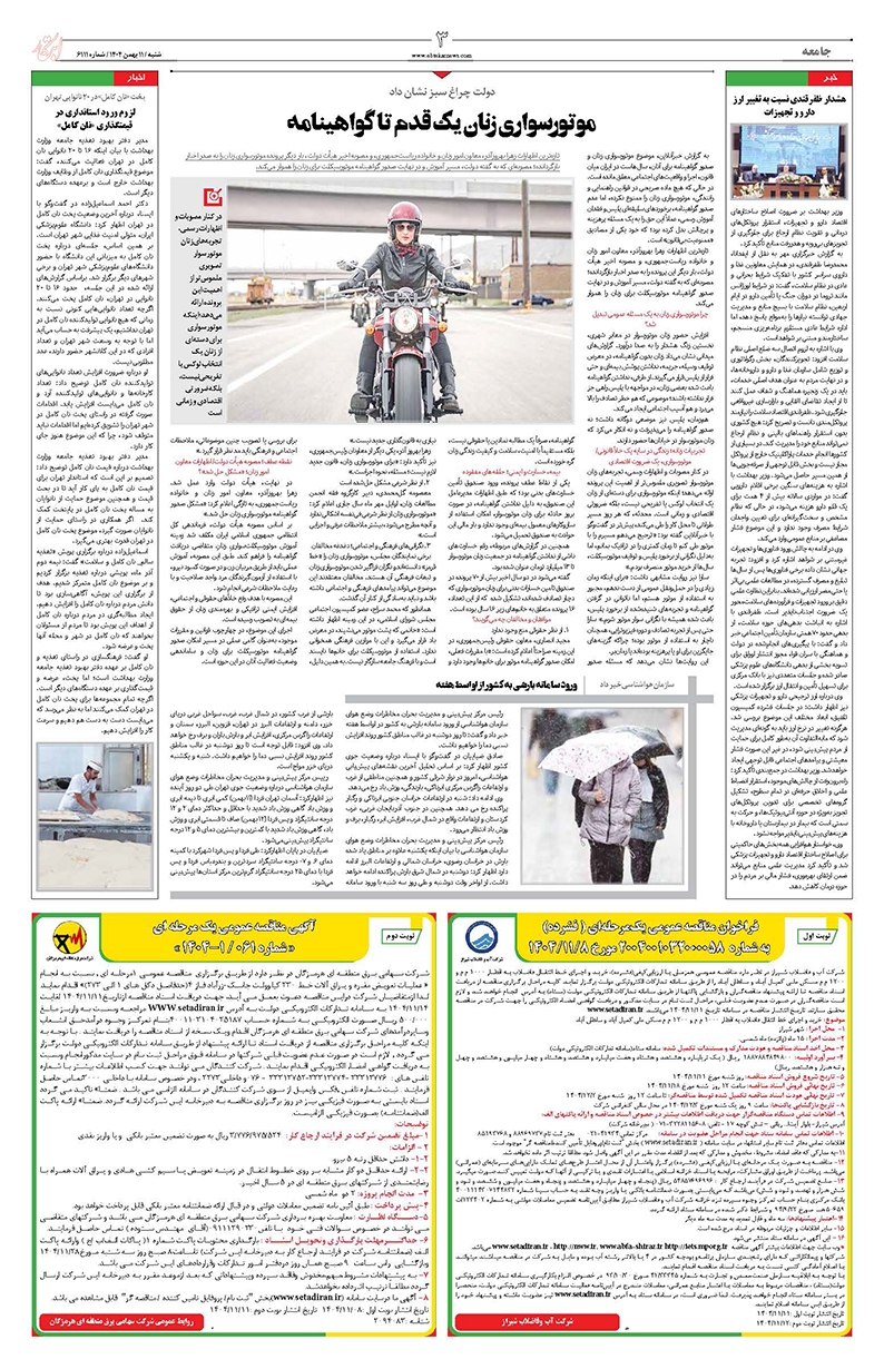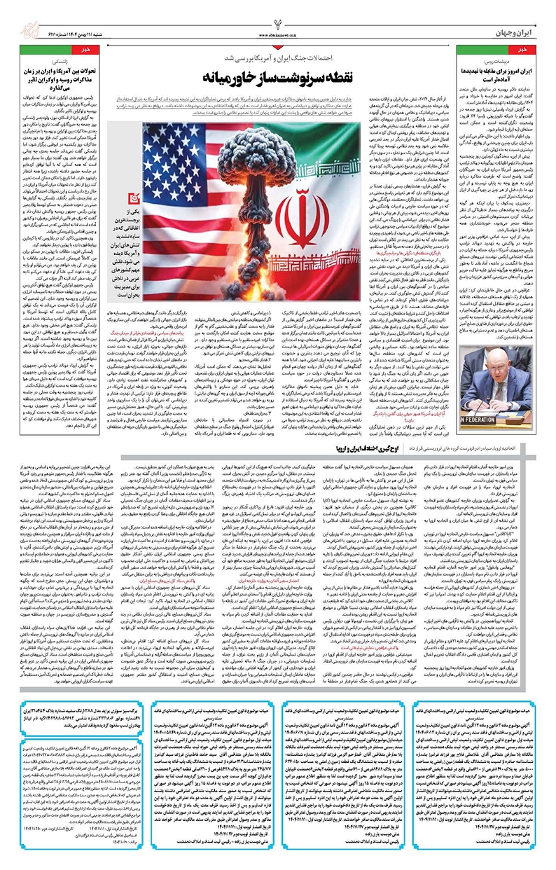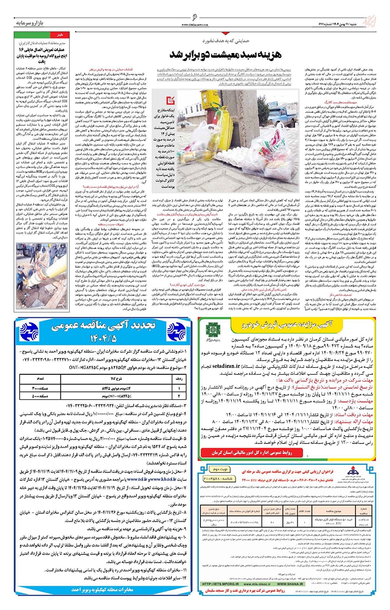 صفحه آخر صفحه ۷ | ایران و جهان صفحه ۶ | بازار و سرمایه صفحه ۵ | آگهی صفحه ۴ | آگهی صفحه ۳ | جامعه صفحه ۲ |  صفحه ۱