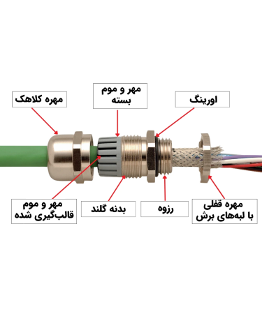 گلند قطعهای مکانیکی برای ورود ایمن کابل به تابلو برق است که وظیفه تثبیت کابل، آببندی محل اتصال و جلوگیری از اعمال تنش به هادیها را بر عهده دارد.