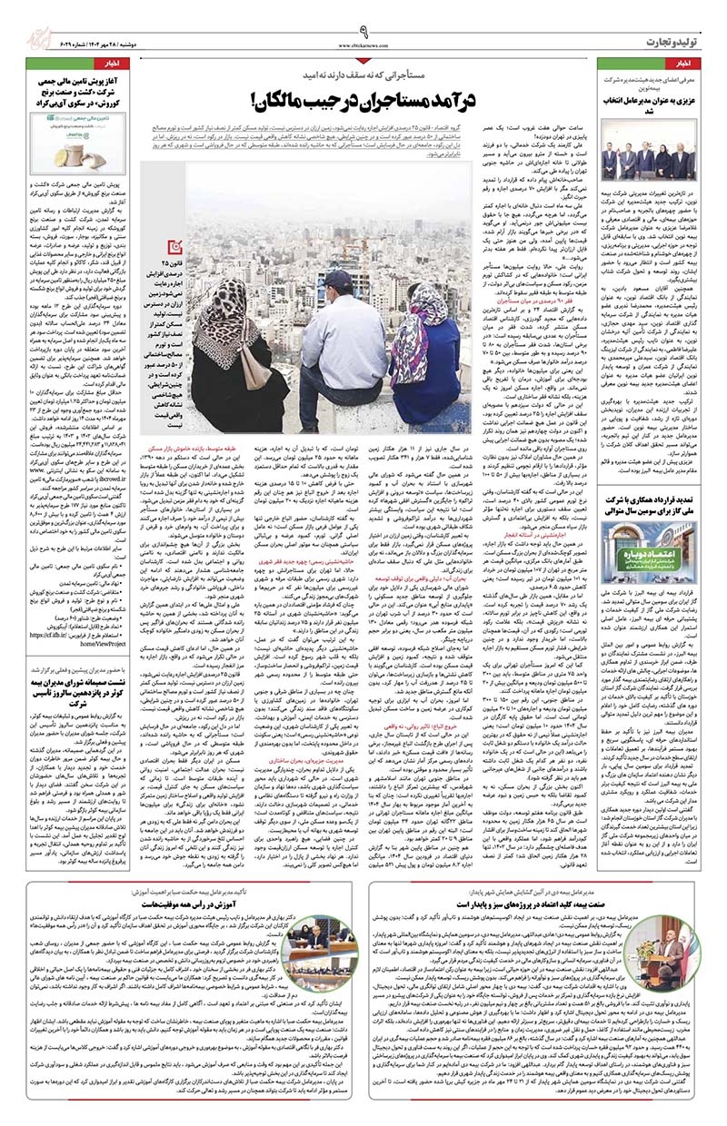 صفحه آخر صفحه ۱۱ | ایران و جهان صفحه ۱۰ | بازار و سرمایه صفحه ۹ | ایران زمین صفحه ۸ | آگهی صفحه ۷ | آگهی صفحه ۶ | حوادث صفحه ۵ | جهان ورزش صفحه ۴ | آگهی صفحه ۳ | جامعه صفحه ۲ | سیاست روز صفحه ۱