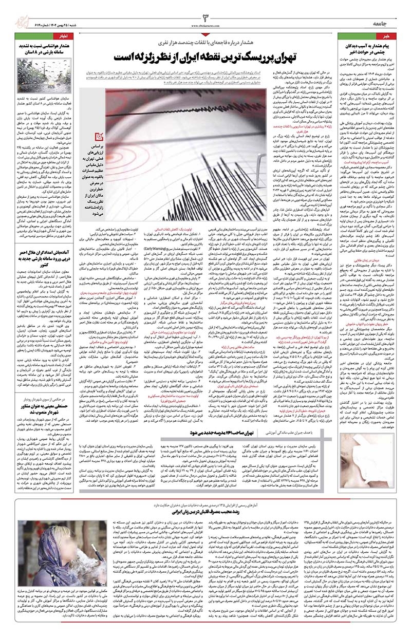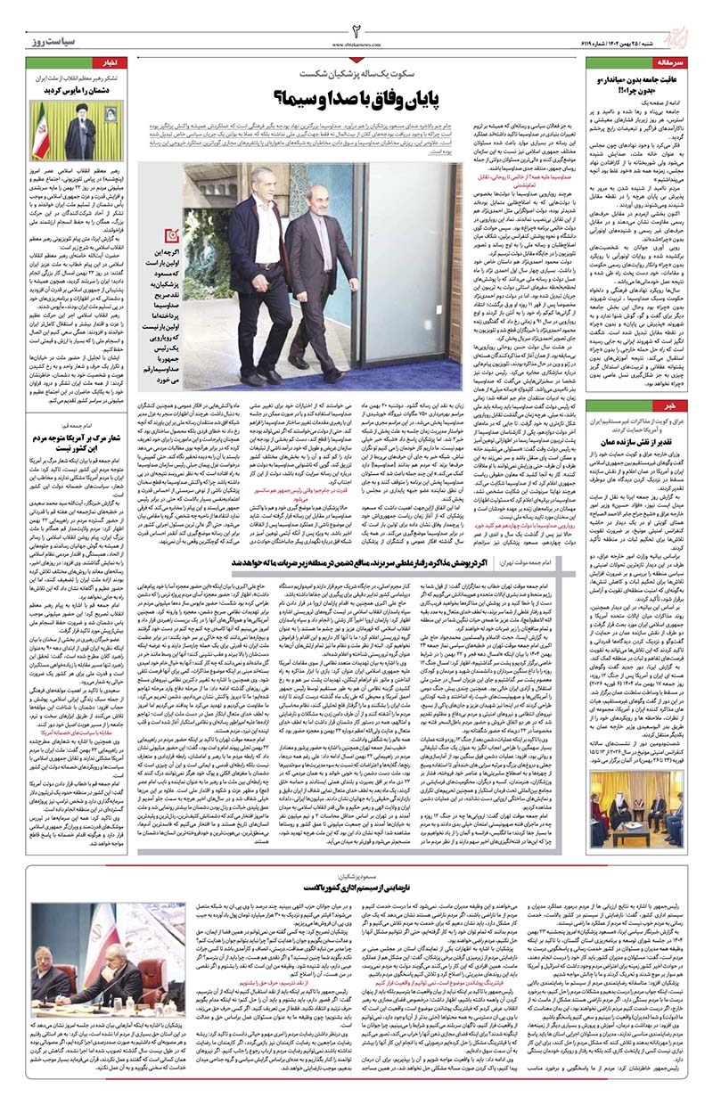 معمای فراست بازدارندگی ایران / طاهر جمشیدزاده ایرانیان، در شرایط جنگ ترکیبی مرز خود را با جریانهای خیانتمحور روشن کنند تاکید عارف بر رسیدگی ویژه به آسیبدیدگان و خانواده جانباختگان حوادث دیماه تکرار نخواهد شد؟ / سیف الرضا شهابی